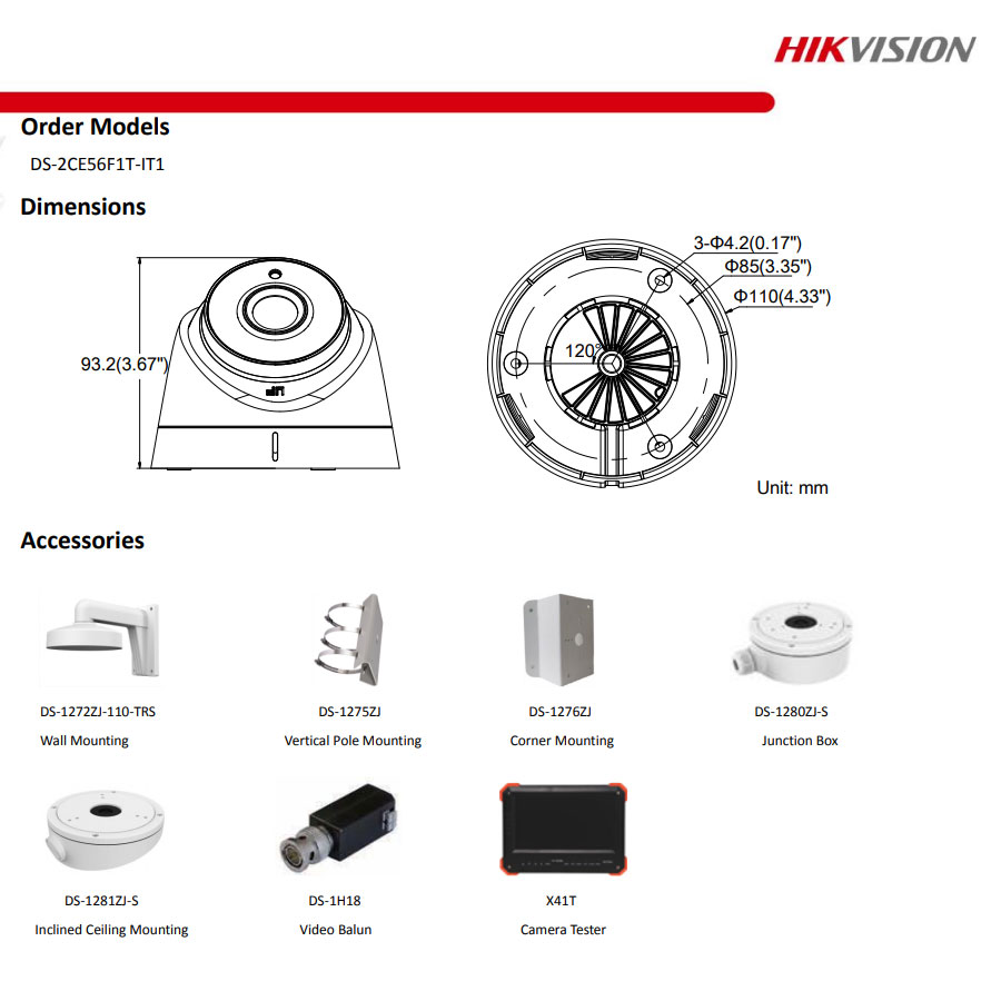 Hikvision DS-2CE56F1T-IT1 3.0 MP EXIR Turret Dome Camera