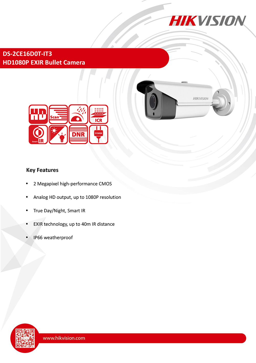 Hikvision DS-2CE16D0T-IT3 2.0 MP HD1080P IR Bullet Camera Camera