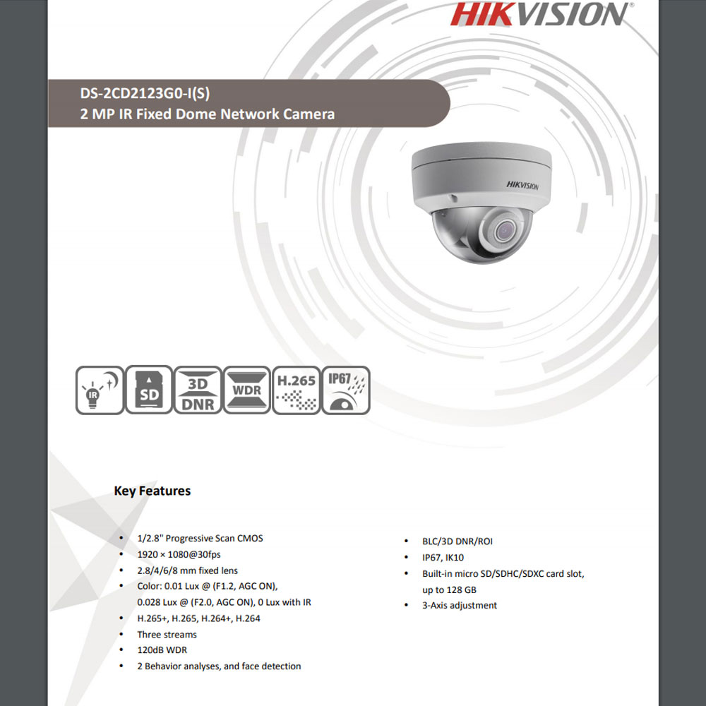 Hikvision DS-2CD2123G0-IS 2 MP IR Fixed Dome Network Camera