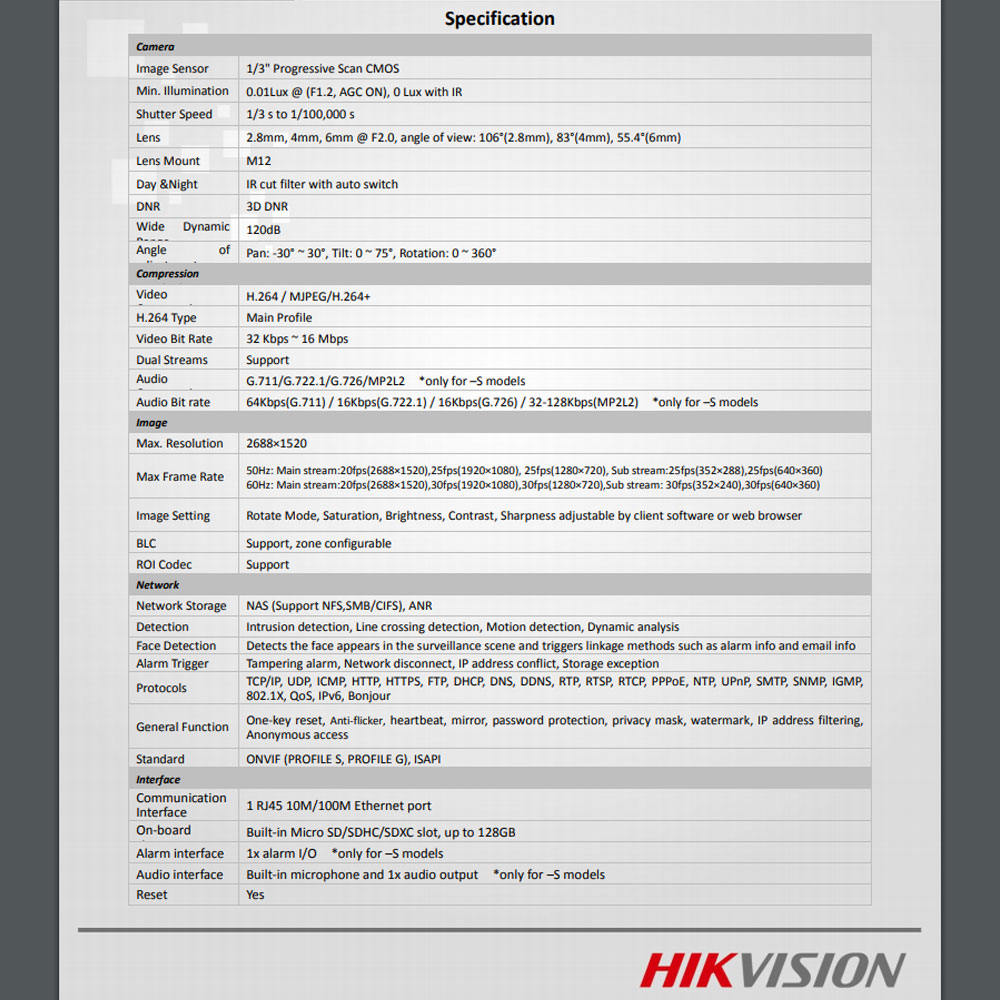 - دوربین مینی دام 4 مگاپیکسل هایک ویژن مدل DS-2CD2542FWD-IS