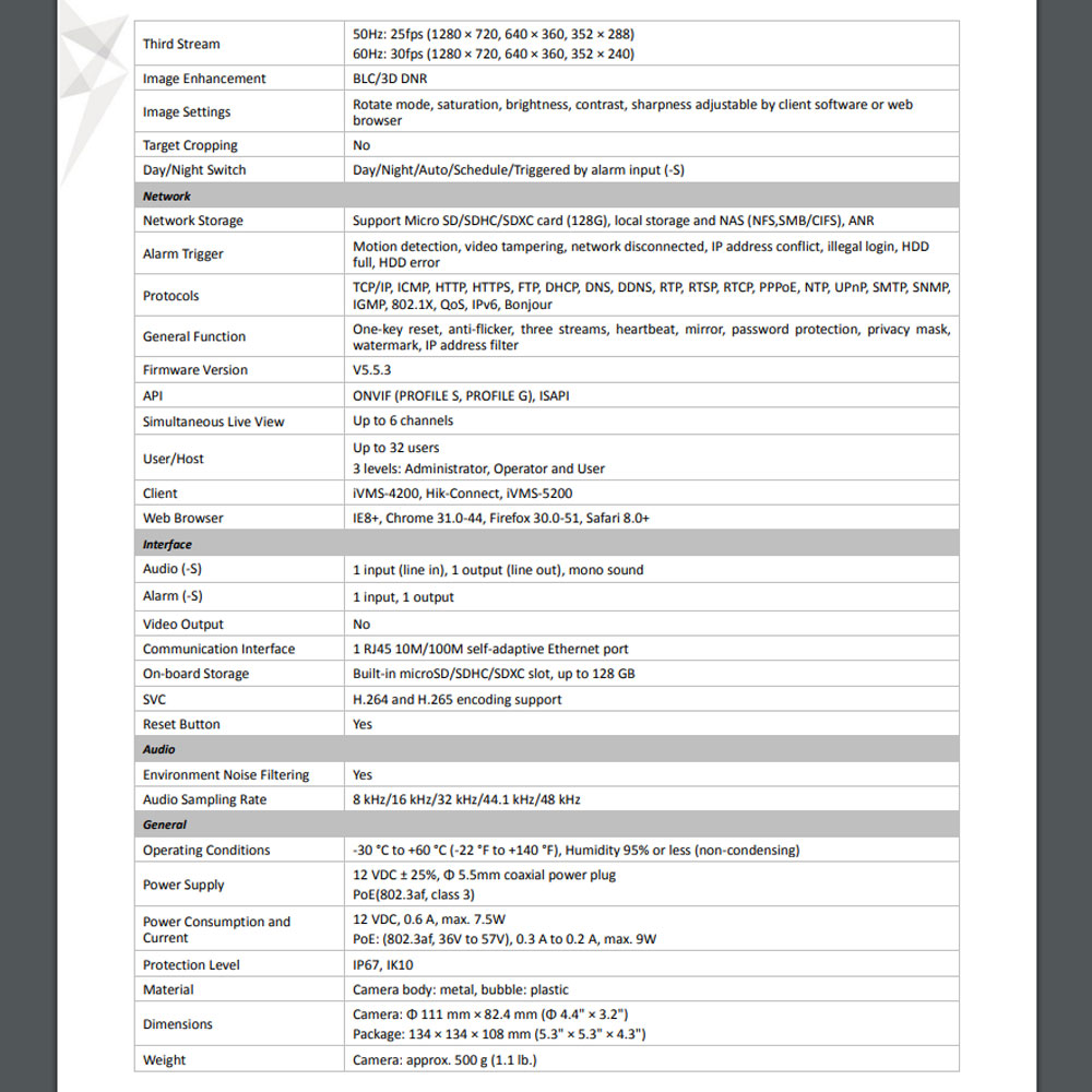 - دوربین دام 6 مگاپیکسل هایک ویژن مدل DS-2CD2163G0-IS