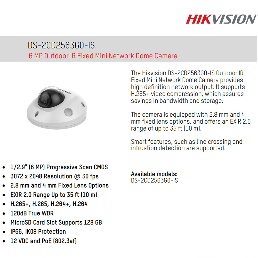 - دوربین مینی دام 6 مگاپیکسل هایک ویژن مدل DS-2CD2563G0-IS
