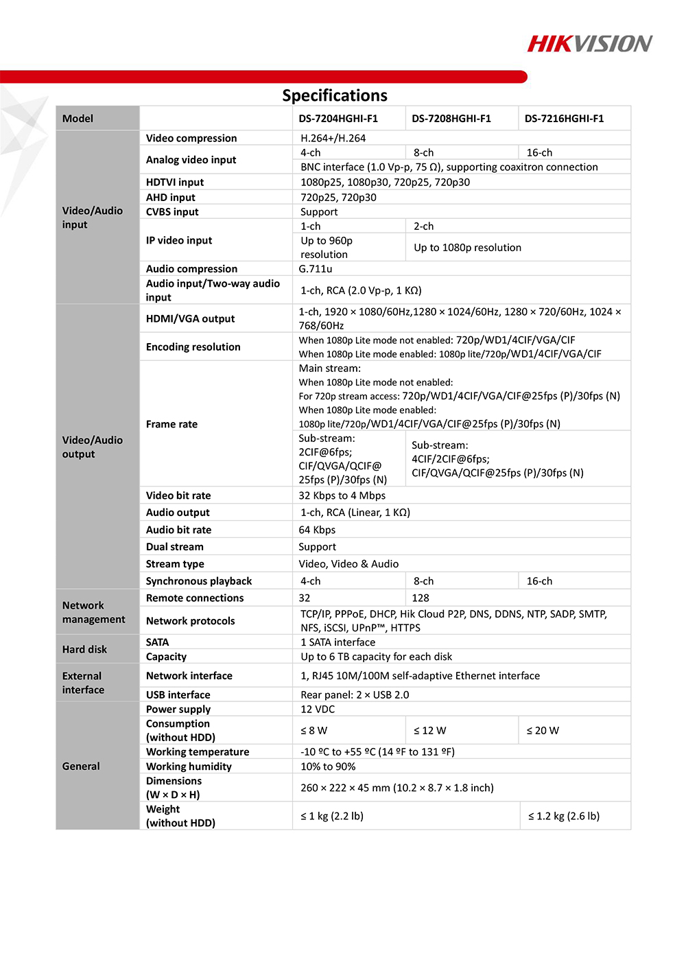 HIKVISION DS-7208HGHI-F1 8 CH TURBO HD DVR