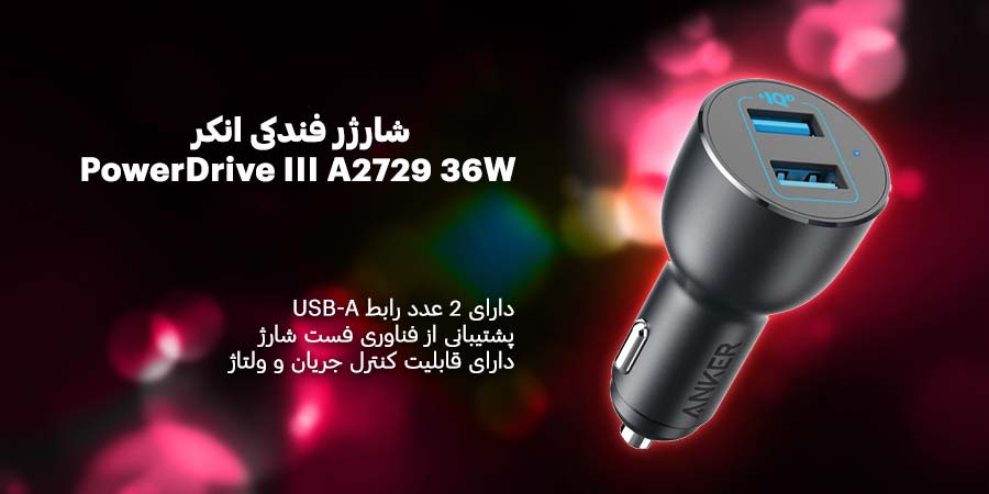 - شارژر فندکی انکر مدل PowerDrive III A2729 36W