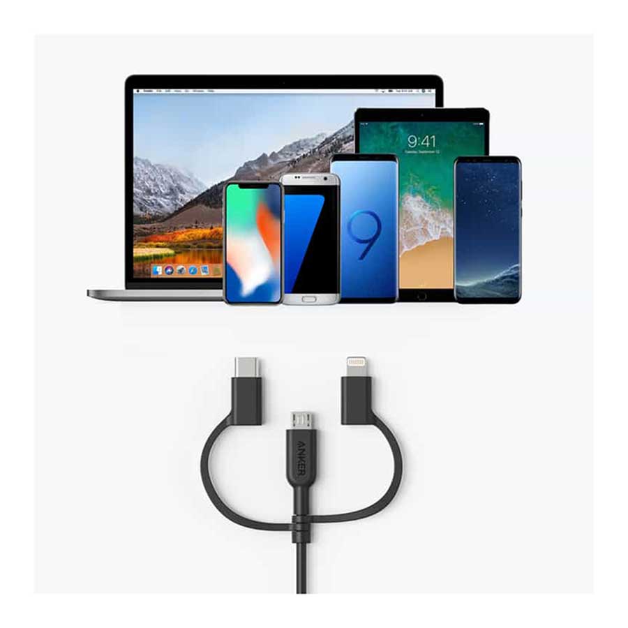 Anker Powerline II A8436 USB to Lightning/Micro/USB-C 0.9m Charging Data Cable