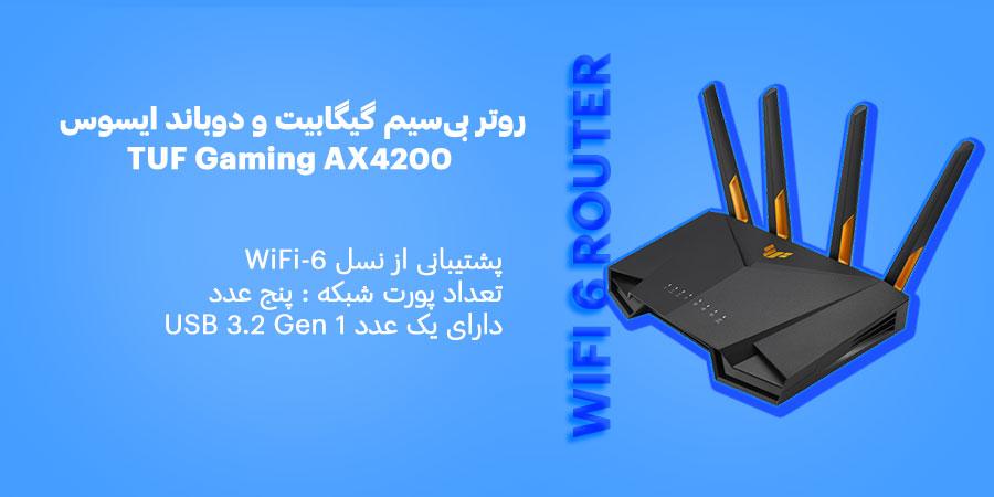 - روتر بیسیم گیگابیت و دوباند ایسوس مدل TUF Gaming AX4200