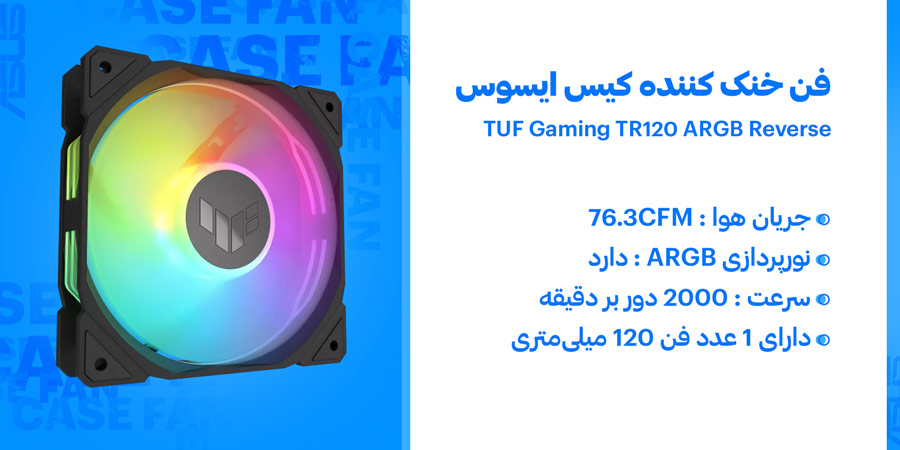 - فن خنک کننده کیس کامپیوتر ایسوس مدل TUF Gaming TR120 ARGB Reverse