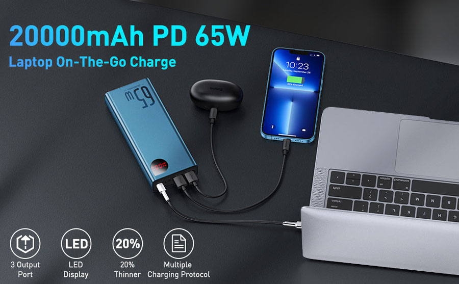 - پاوربانک بیسوس 65W Adaman Metal PPADM65 PPIMDA-D01 ظرفیت 20000mAh
