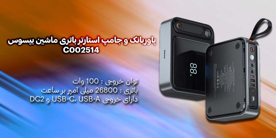 - پاوربانک و جامپ استارتر باتری ماشین بیسوس مدل C002514 ظرفیت 26800mAh