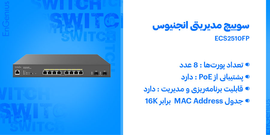 - سوييچ 8 پورت گيگابيت و مدیریتی انجنیوس مدل ECS2510FP