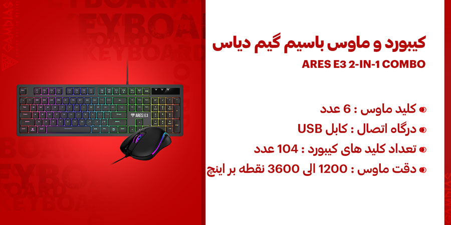 - کیبورد و ماوس گیمینگ باسیم گیم دیاس مدل ARES E3 2-IN-1 COMBO