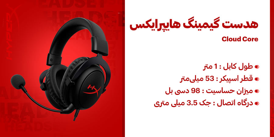 - هدست گیمینگ باسیم هایپرایکس مدل Cloud Core