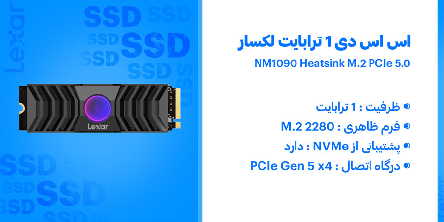 - اس اس دی 1 ترابایت لکسار مدل NM1090 Heatsink M.2 2280 PCIe 5.0