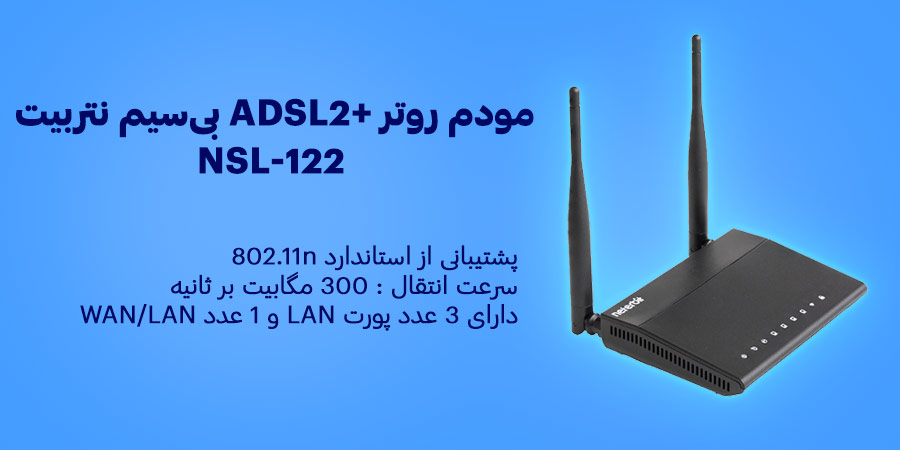- مودم روتر +ADSL2 بیسیم N300 نتربیت مدل NSL-122