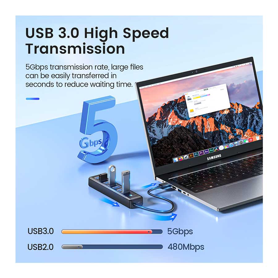 هاب USB-C هفت پورت اوریکو مدل PW7U-C3-10