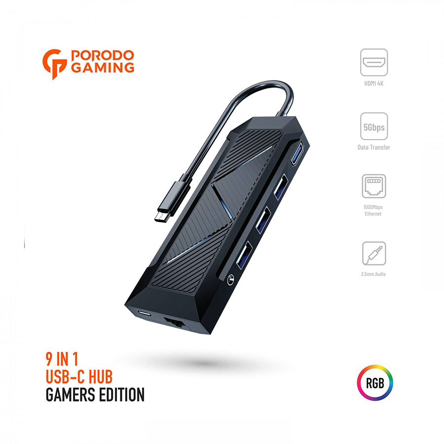 Porodo PDX520 9 in 1 USB-C Gaming Hub