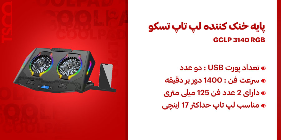 - پایه خنک کننده لپ تاپ تسکو مدل GCLP 3140 RGB